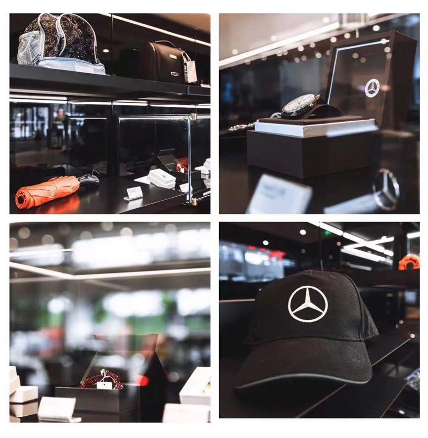 精品展示区陈列着梅赛德斯-奔驰品牌精品,产品涵括服装、饰品、生活装饰等多个种类,将奔驰品牌元素与潮流元素相结合,融设计感与实用性为一身。